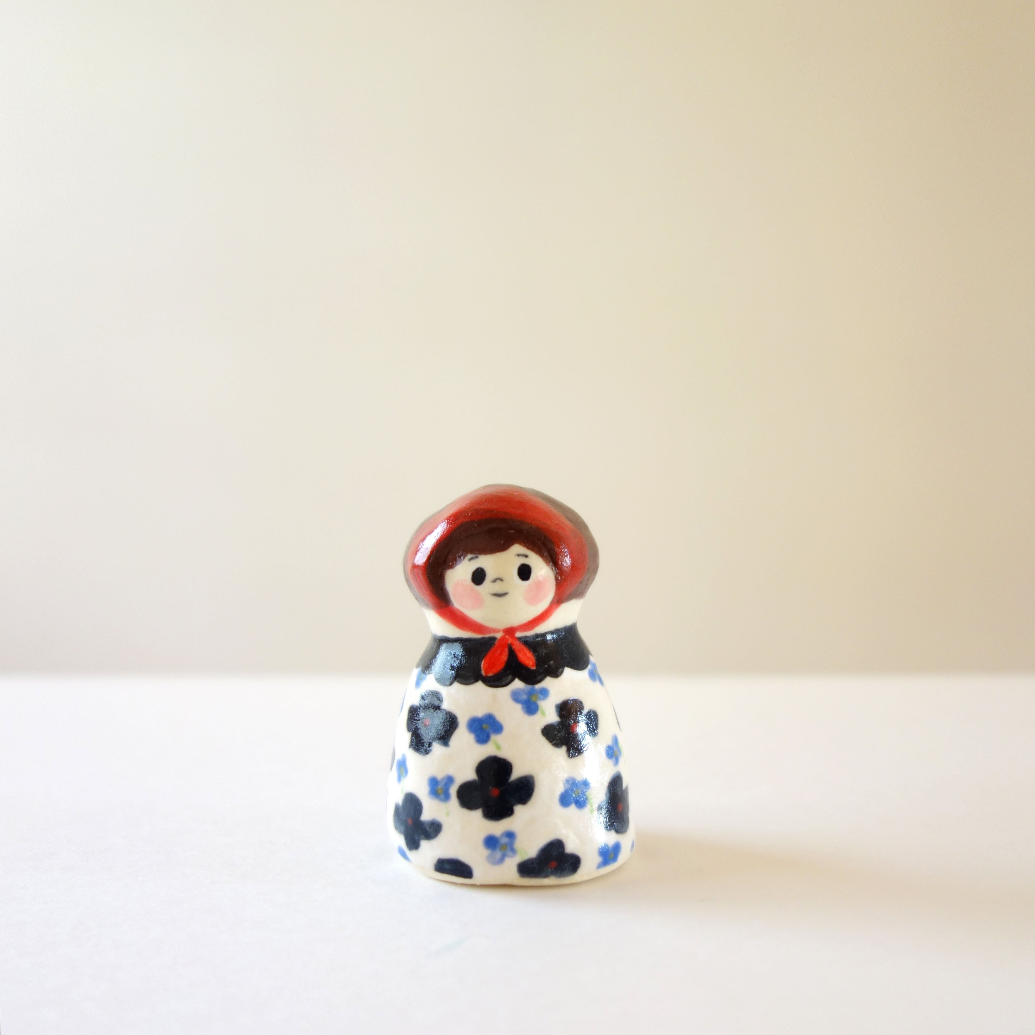 陶人形「黒花ワンピの女の子」