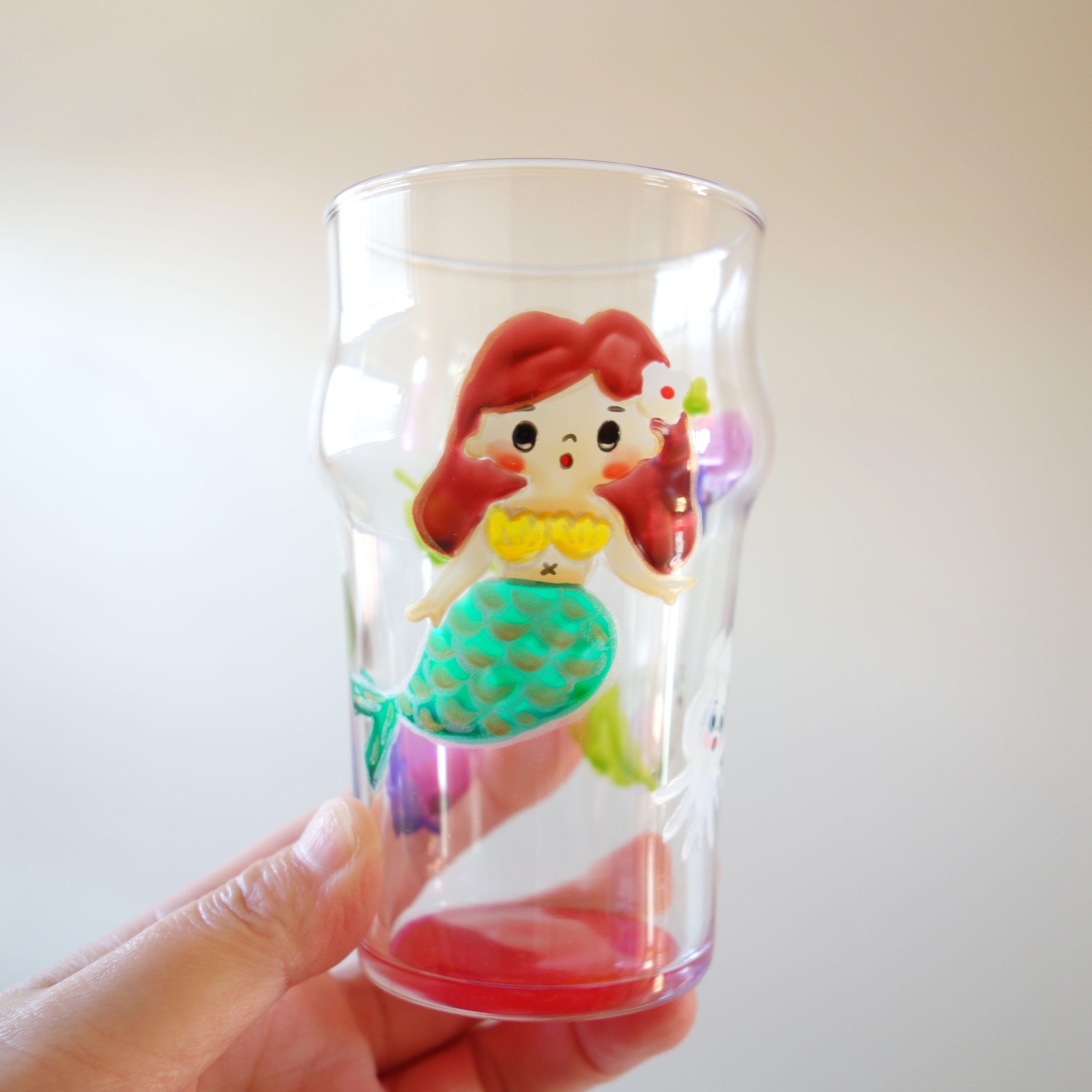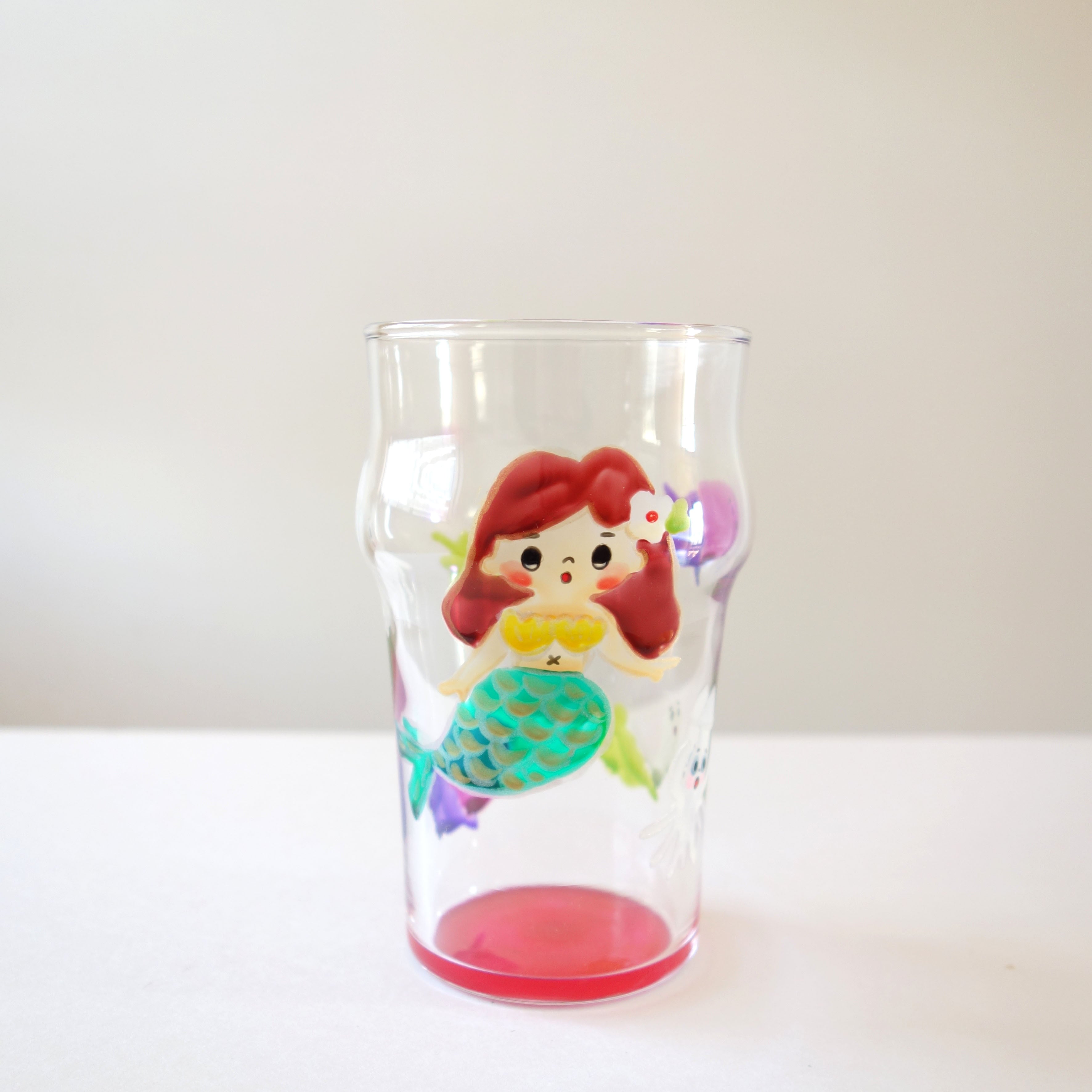 《 絵付けグラス(大)/人魚姫 ピンク(箱入り) 》