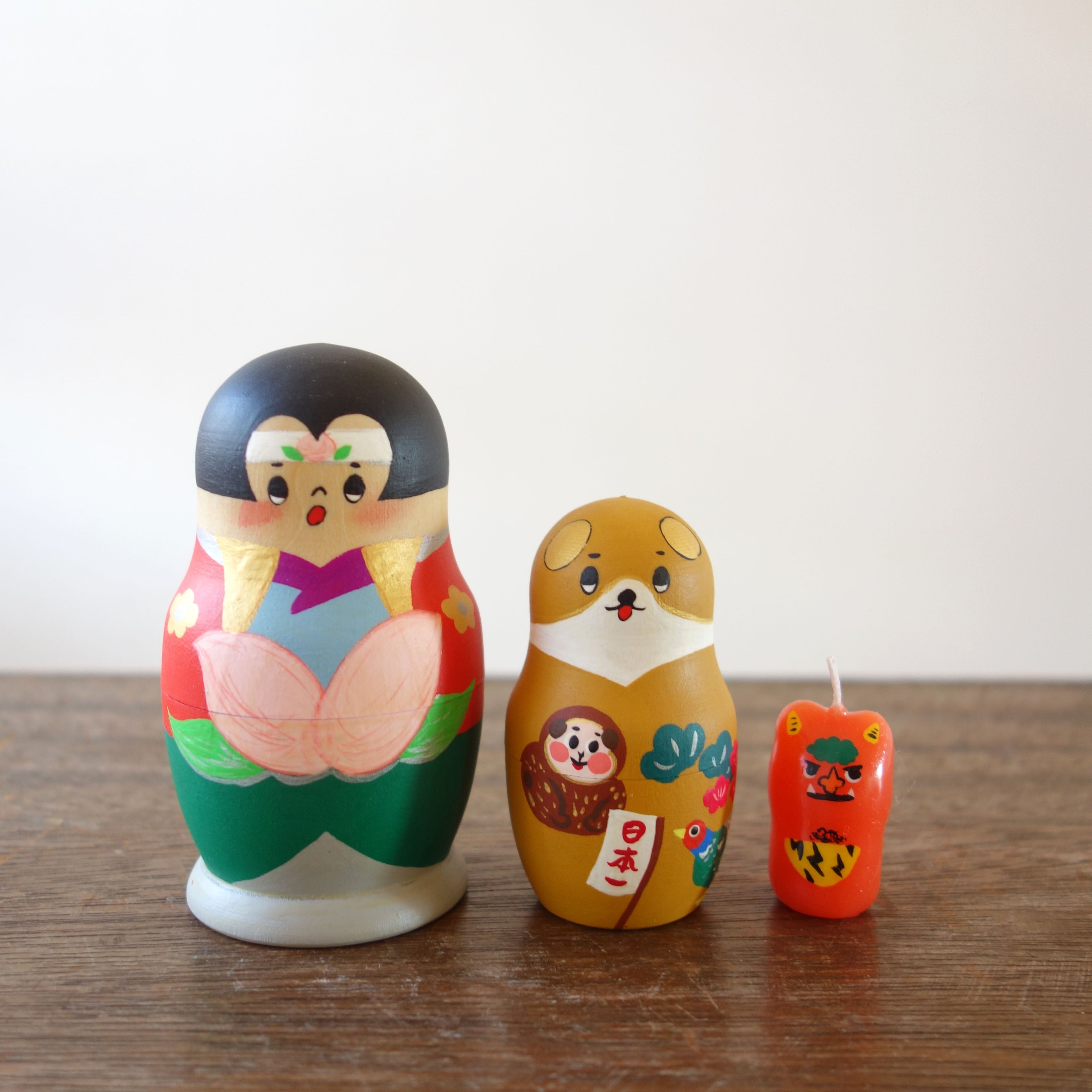 pichio candle(ピチオキャンドル)のマトリョーシカとキャンドルのセットです。